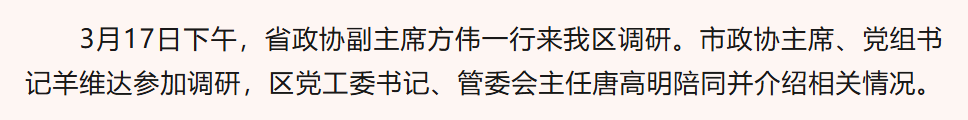 省政协副主席方伟一行来我区调研