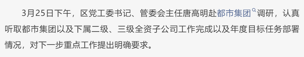 唐高明调研都市集团工作开展情况