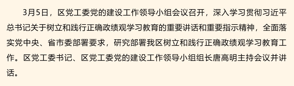 区党工委召开会议部署树立和践行正确政绩观学习教育工作