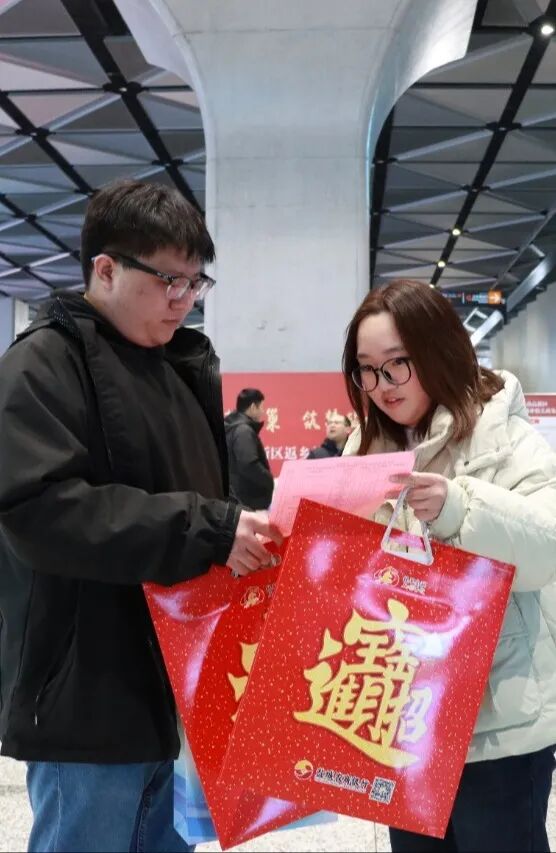 工作人员一对一解读“黄海明珠人才计划2.0版”“富民创业贷”“人才购房补贴”等返乡重磅政策,用通俗语言拆解申请条件、补贴标准和办理流程,让好政策从“纸上”落到“手上”。优质岗位发布区精选了1月份全区热门岗位,覆盖大数据、新型显示、智能制造等重点领域。优质楼盘与购房政策展示区汇集盐南热门优质楼盘,工作人员同步宣讲人才购房补贴、安居促销等配套政策,详细解答首付比例、补贴申领等疑问,切实服务返乡人员“就业+安居”双重需求。现场还送出定制春联、福字300余份,将家乡的牵挂与新春的美好期许,亲手送到每一位返乡人手中。