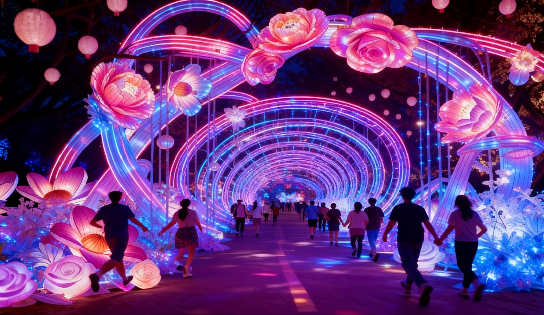 今年珠溪古镇的灯会,满目流星,璀璨梦幻,带领大家走进《镜花缘》的奇幻世界: