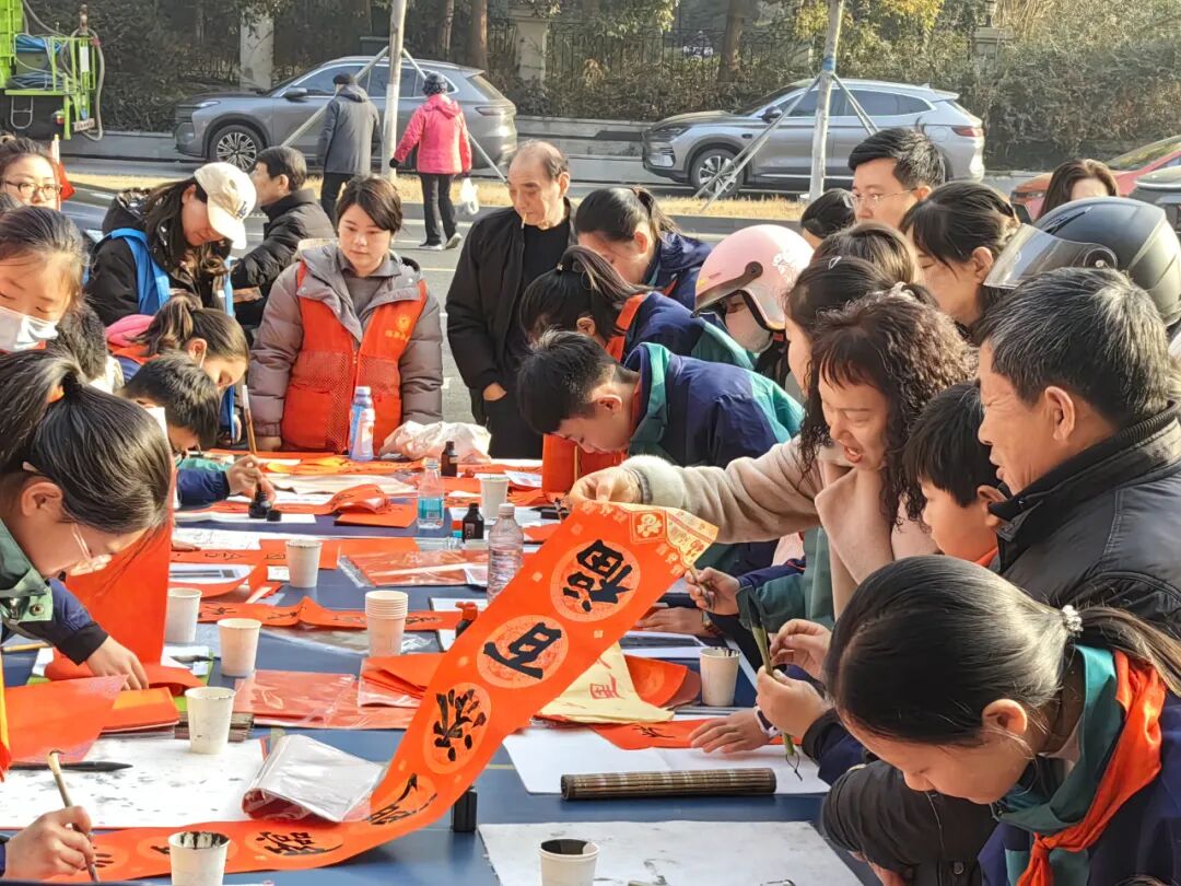 一场“翰墨飘香送春联 经典诵读迎新春”主题活动则充满了书香雅韵。社区携手盐城市第一小学,将经典诵读与春联书写巧妙融合。孩子们琅琅的读书声奏响了迎春序曲,学校领导、师生及社区志愿者共同提笔书春,把一幅幅手写的祝愿送给居民,深化了校社情谊,也让传统文化在墨香中生动流淌。