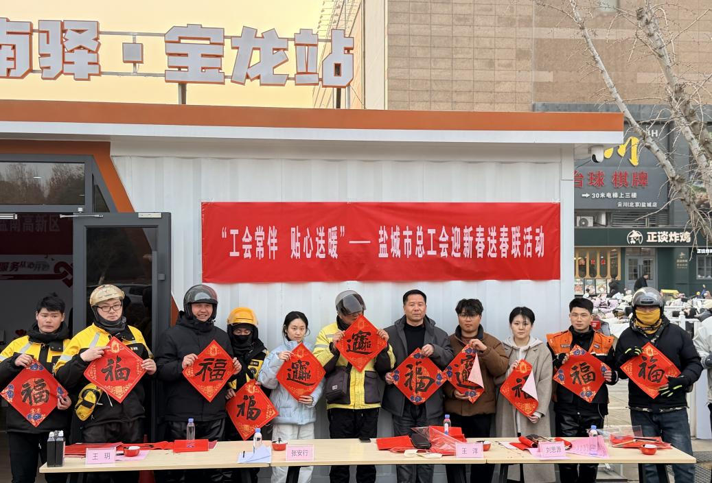街道联合盐城市总工会,于“红印宝龙”暖心驿站举办了“工会常伴 贴心送暖”活动。书法家们现场挥毫,将满载吉祥祝福的春联和“福”字赠予穿梭于城市间的外卖骑手,让这些“美好生活守护者”在奔波之余,感受到来自社区“家”的温暖与浓厚的传统年味。