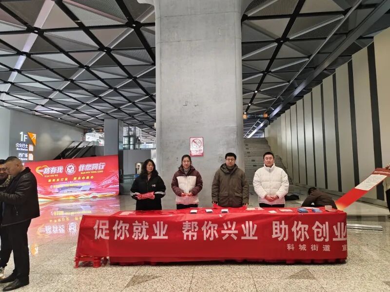 紧抓春节返乡潮的契机,街道便民服务中心在盐城高铁站南广场设立服务点,开展“促你就业、帮你兴业、助你创业”主题宣传。活动通过推介线上就业平台、解读创业担保贷款政策、发放防招聘欺诈手册等方式,为返乡“科城人”提供从岗位对接、政策咨询到风险防范的全方位服务,并送上春联福字,以务实举措温暖返乡路,助力人才留乡发展。