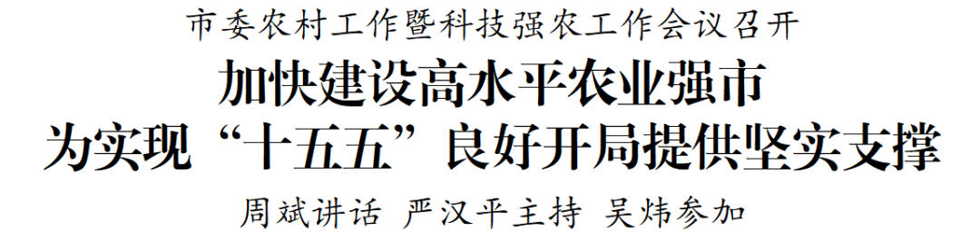 2月11日上午,市委农村工作暨科技强农工作会议召开,全面贯彻习近平总书记关于“三农”工作的重要论述和重要指示精神,认真落实中央和省委有关部署,总结“三农”发展成绩,安排今年重点任务,加快建设高水平农业强市,为实现“十五五”良好开局提供坚实支撑。市委书记周斌出席并讲话。市委副书记、市长严汉平主持,市委副书记吴炜参加。 周斌充分肯定“十四五”时期全市“三农”工作取得的成绩。他指出,“十五五”时期是基本实现社会主义现代化夯实基础、全面发力的关键时期。要切实把思想和行动统一到中央和省委、省政府决策部署上来,锚定建设高水平农业强市目标,统筹发展科技农业、绿色农业、质量农业、品牌农业,加快建设宜居宜业和美乡村,奋力推动“十五五”“三农”工作开好局、起好步。 周斌强调,要坚持稳粮安农,严守耕地筑根基,深耕细作增效能,多元供给强保障,系统施策提升农业综合产能。要坚持科技强农,做优高质量科技供给,做强高层次创新主体,做实高效能成果转化,因地制宜培育农业新质生产力。要坚持融合兴农,围绕“强链条”“立地标”“促共富”,建设农业全产业链,加大绿色优质农产品供给力度,培育一批农业龙头企业、领军企业,加快把农业建成现代化大产业。要坚持强基惠农,学习运用“千万工程”经验,推动公共服务向基层下沉、向农村覆盖,坚持和发展新时代“枫桥经验”,深化移风易俗,整市推进第二轮土地承包到期后再延长30年试点,促进集体经济适度多元发展,努力让农民生活更加富裕美好。 周斌指出,“三农”工作既是“国之大者”,也是“民心工程”,必须以更大力度加强党的全面领导,牢牢把握“三农”发展主动权。要持续拧紧责任之弦、强化统筹之效、提升干事之能,坚持五级书记抓乡村振兴,深化“干部联村、一村一策”行动,打造一支懂农业、爱农村、爱农民的“三农”工作队伍,持续深化群众身边不正之风和腐败问题集中整治,把“政府做的”和“农民想的”对接起来,让广大农民更多分享现代化建设成果。 严汉平对科技强农工作进行部署。他指出,要坚决扛起农业大市担当,坚持陆海统筹,坚定走好科技强农之路,在聚力突破关键核心技术、壮大新型农业经营主体、推动人工智能融合赋能、营造一流科技创新生态上打头阵、当先锋,因地制宜发展农业新质生产力,不断塑造“三农”发展新优势。 会议以视频会议形式召开,我区设分会场收听收看。区党工委书记、管委会主任唐高明在市主会场参加会议。区党工委副书记、管委会副主任朱杰成,区管委会副主任、党工委委员何成效在区分会场参加。