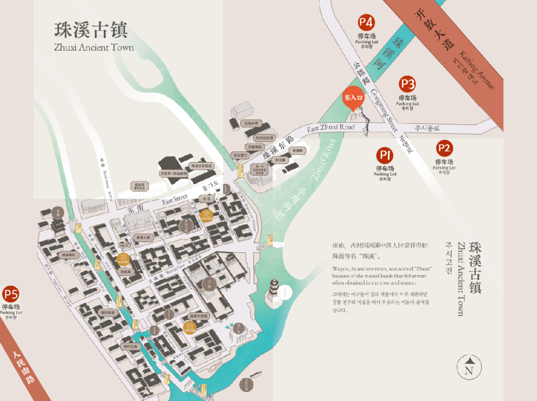 P4地上停车场:距珠溪古镇东门约126米,步行2分钟;