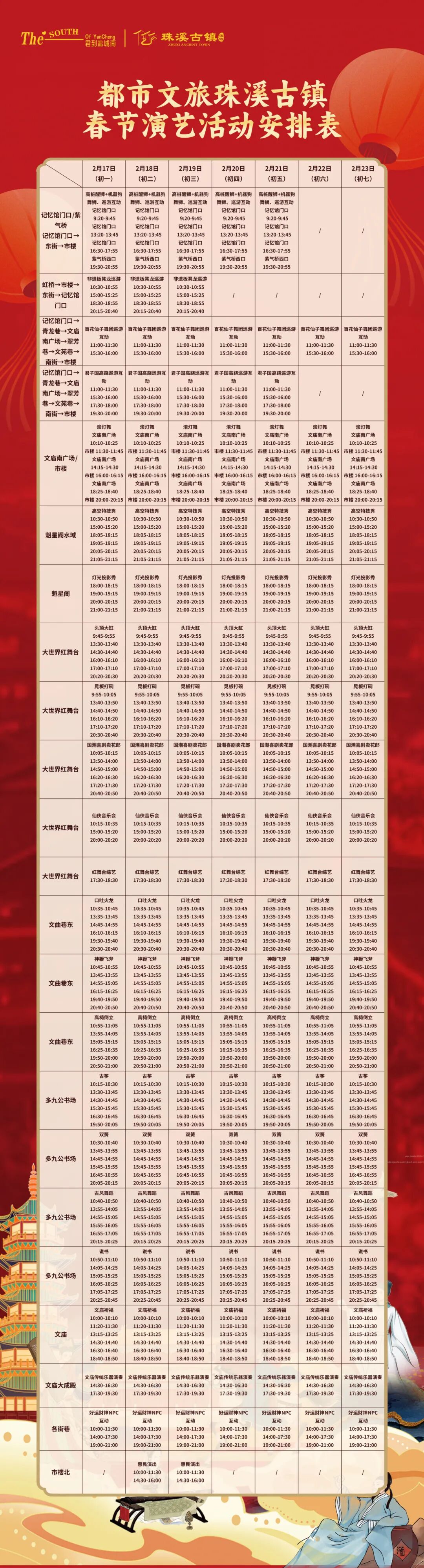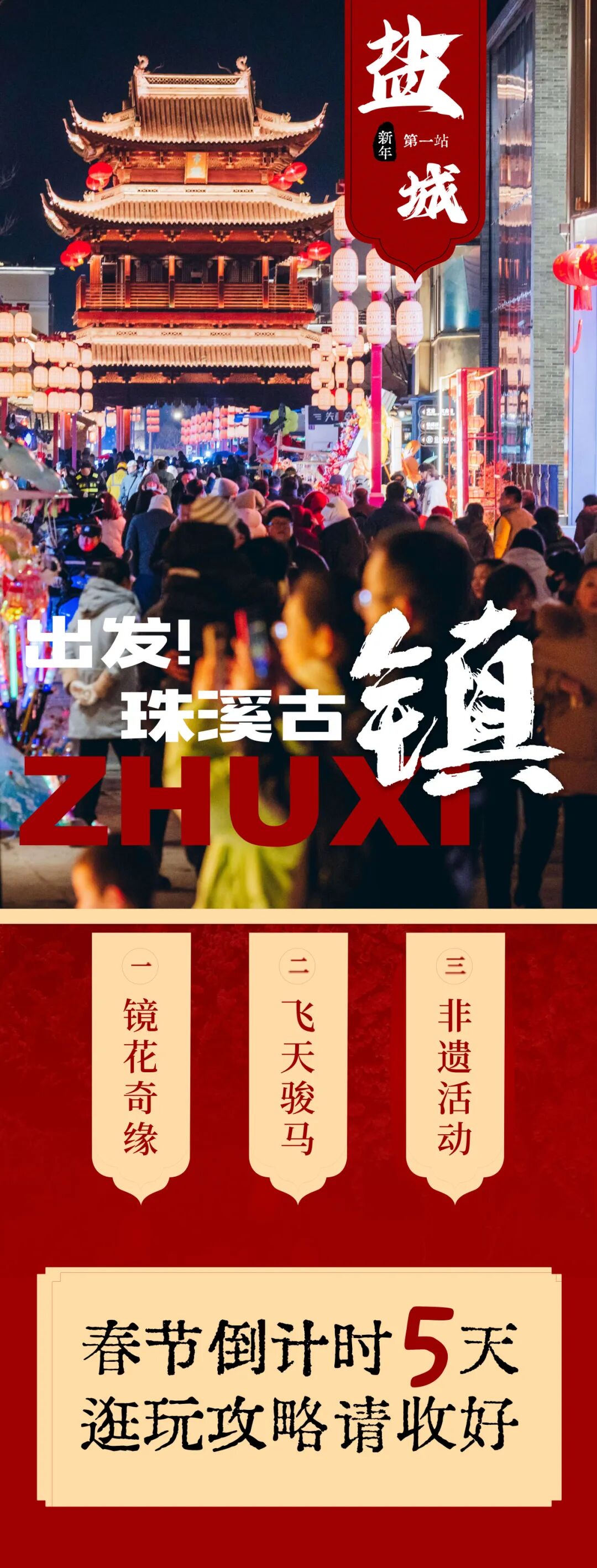 为保障春节期间,游客们的游玩体验,珠溪古镇及周边设有地上/地下停车场共计6个,以及多个临时停车区域,全面保障停车无忧。