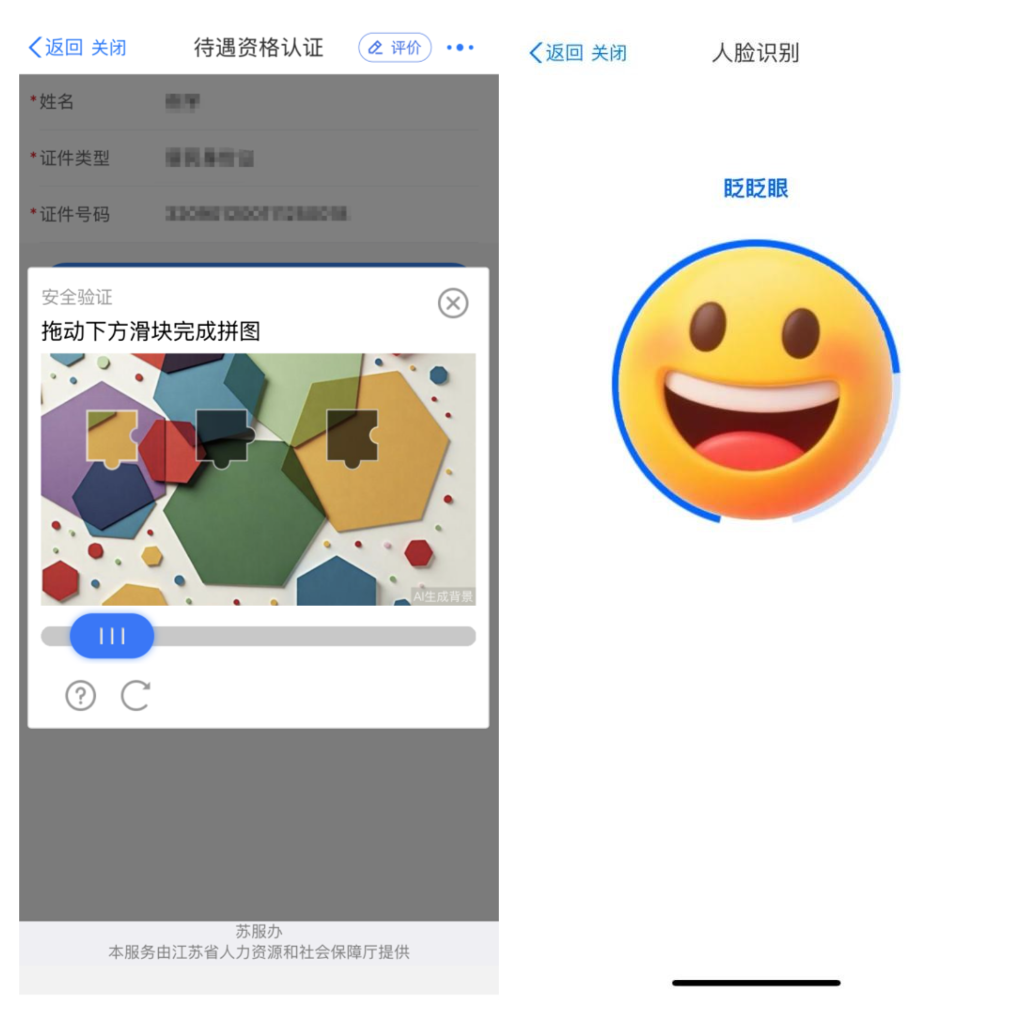 ③完成安全验证,拖动蓝色滑块填补图片空缺,完成人脸识别验证。